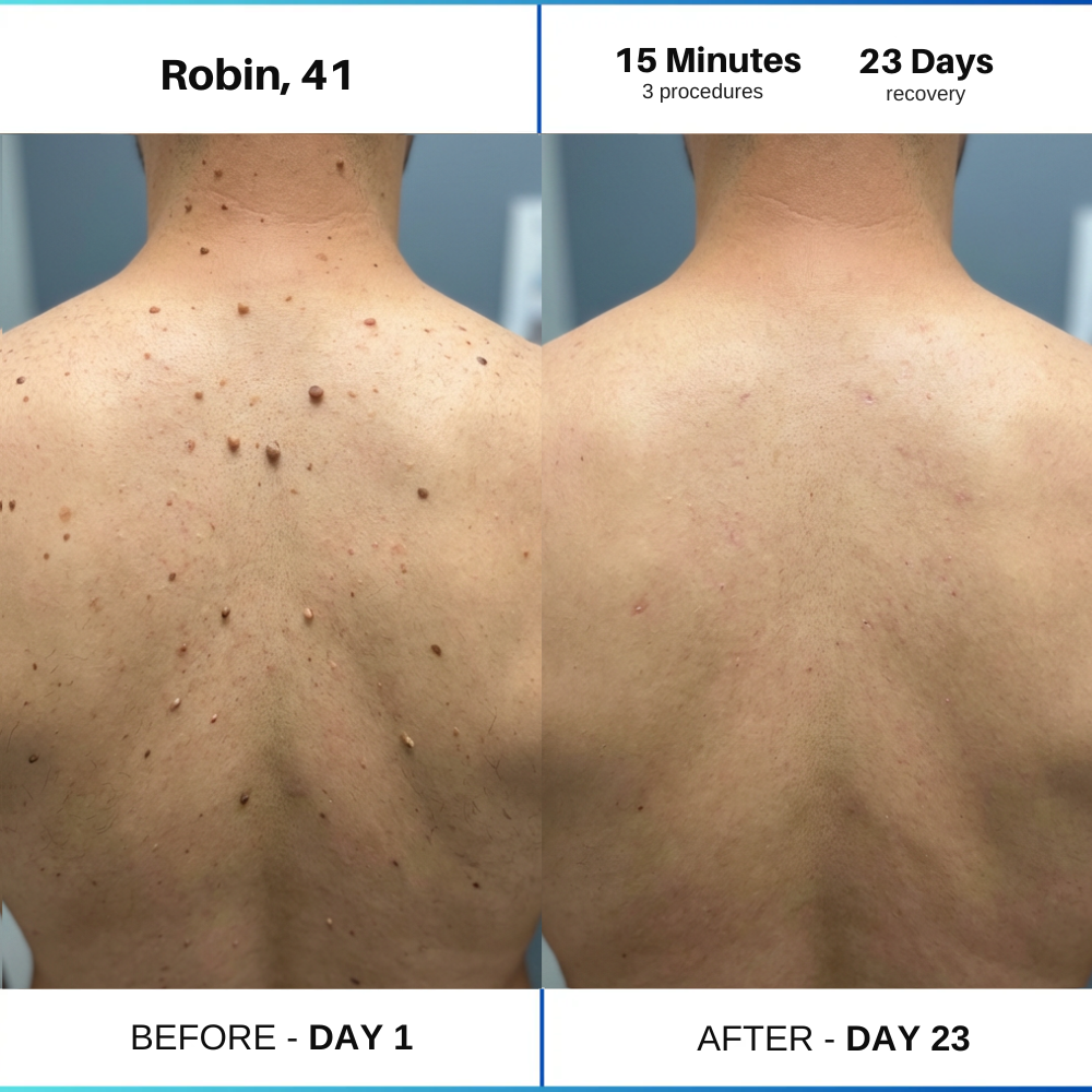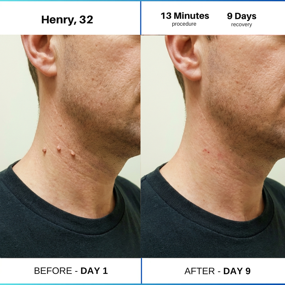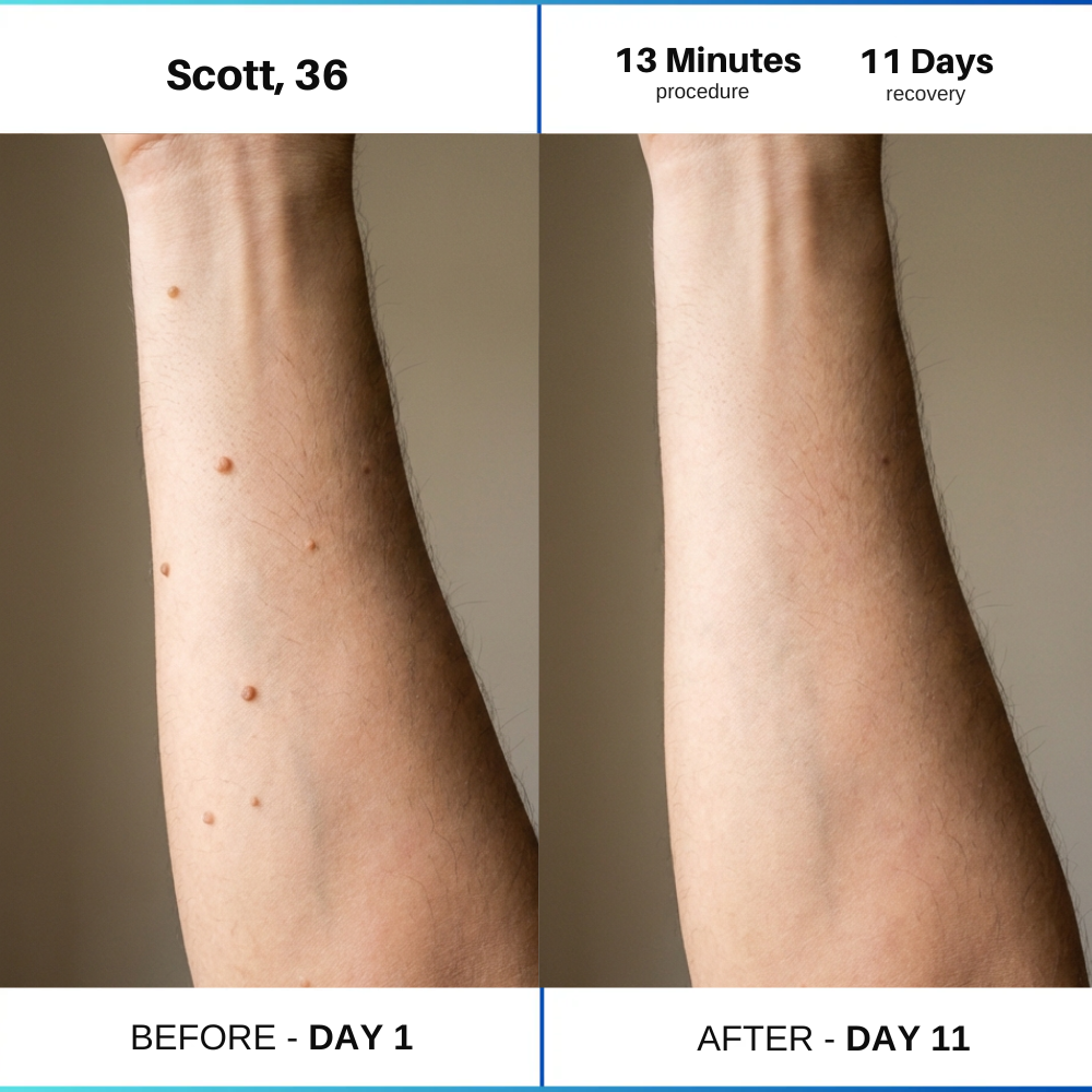 Right after the initial treatment many users experience immediate and permanent removal of blemishes such as small moles, skin tags, and cherry angiomas, enhancing their overall appearance.