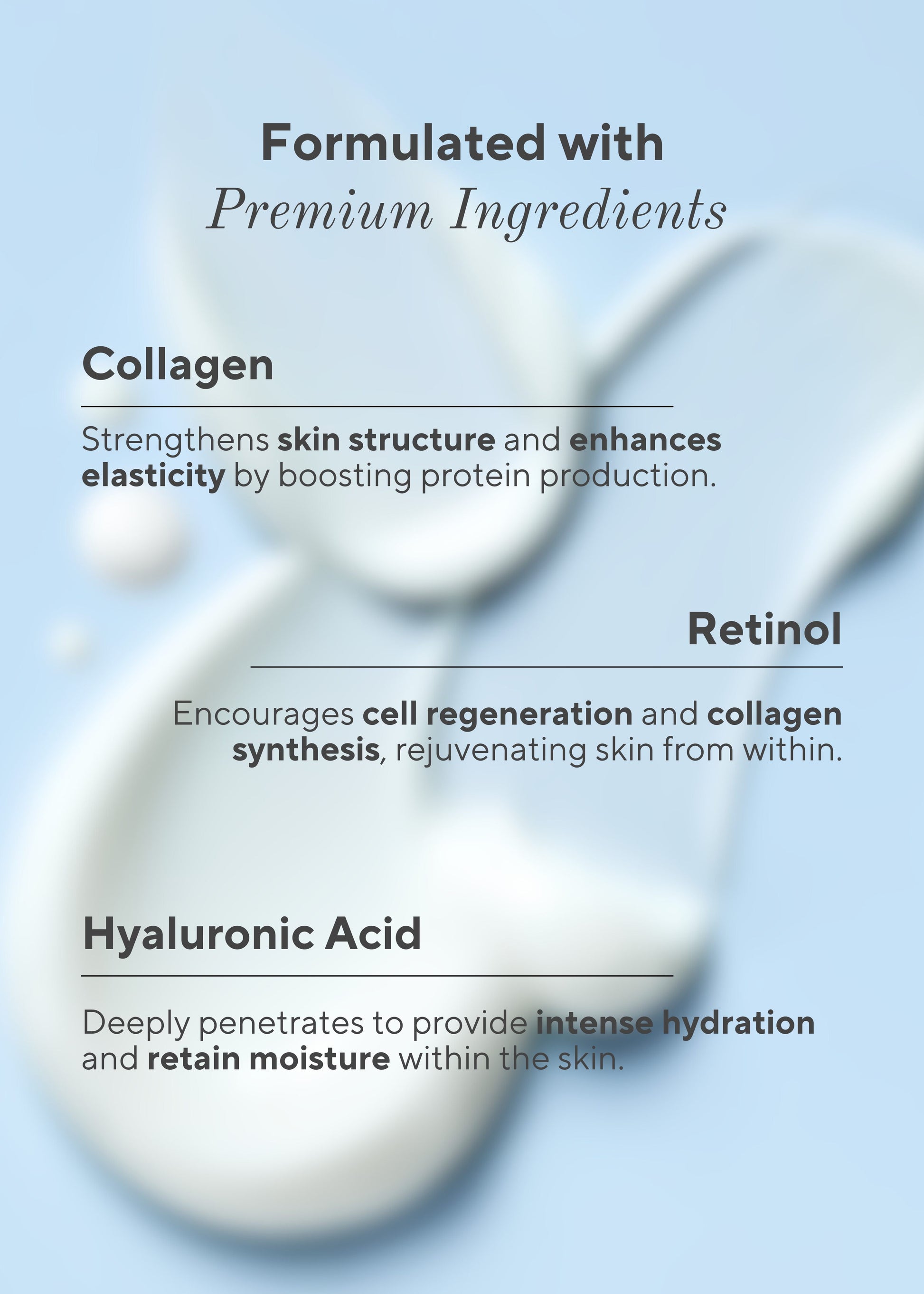 Hydrate and Repair: After the initial healing phase, start applying our all-in-one cream with collagen, retinol, and hyaluronic acid. This cream hydrates the skin, promotes collagen production, and aids in recovery and rejuvenation. Apply twice daily, morning and night, to clean, dry skin.