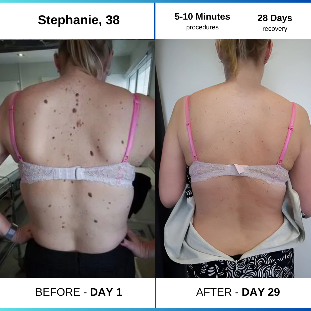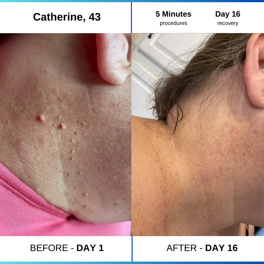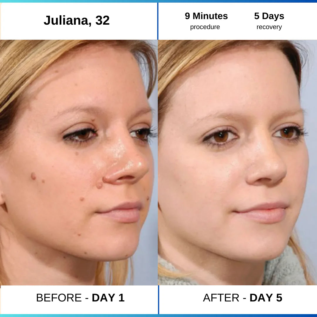 Right after the initial treatment many users experience immediate and permanent removal of blemishes such as small moles, skin tags, and cherry angiomas, enhancing their overall appearance.